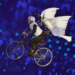 演员们伴随着音乐在空中骑行