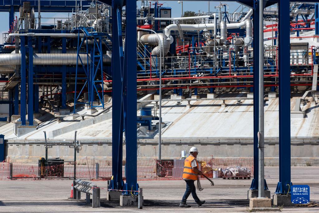 9月21日,一名工作人员在希腊雷维苏萨液化天然气接收站工作。