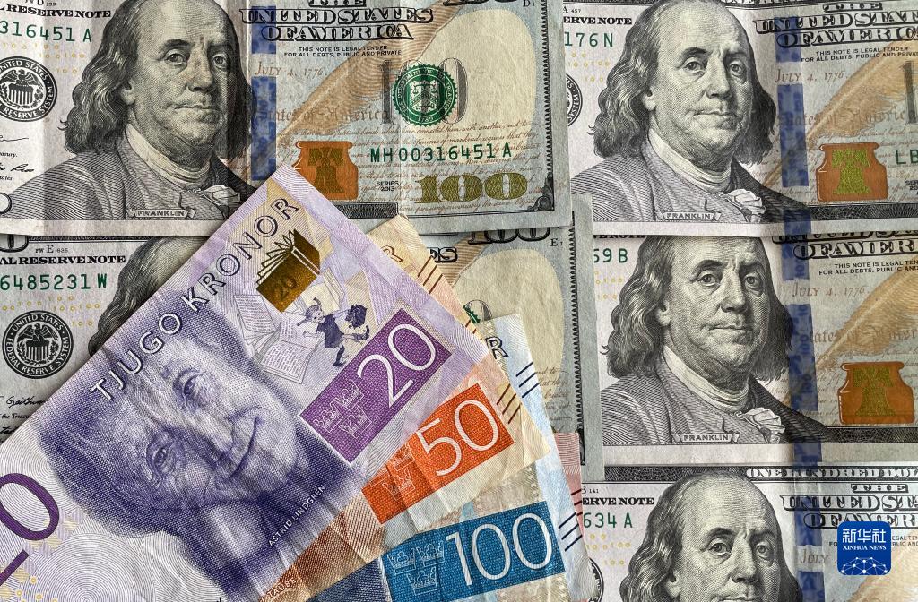 这是9月23日在瑞典斯德哥尔摩拍摄的瑞典克朗和美元纸币。