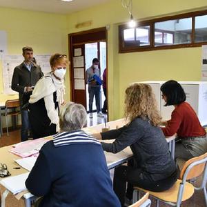 9月25日,意大利联盟党党首萨尔维尼在米兰的一处投票站准备投票。
