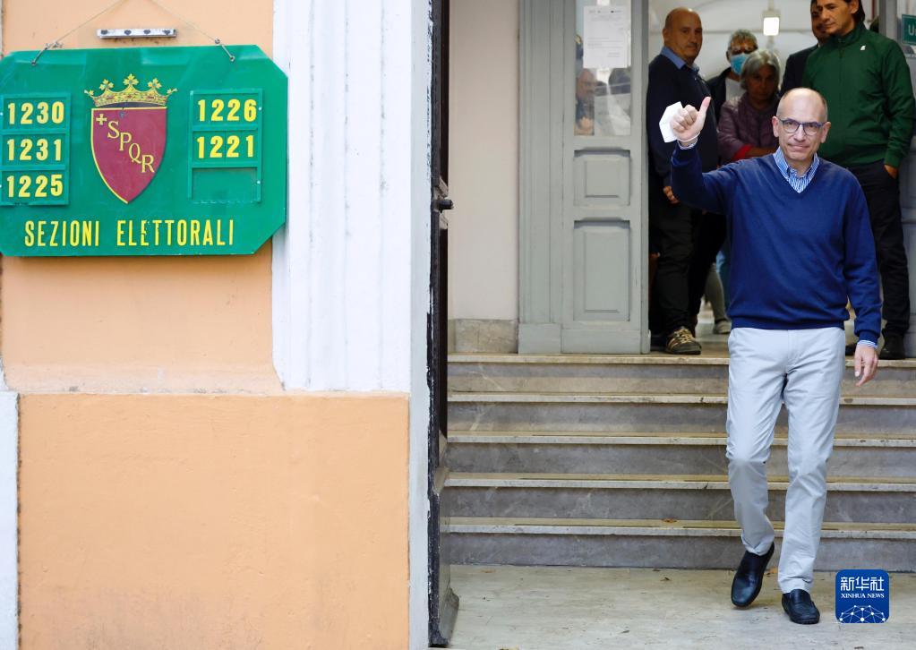 9月25日,意大利前总理、民主党领导人莱塔投票后走出罗马一处投票站。