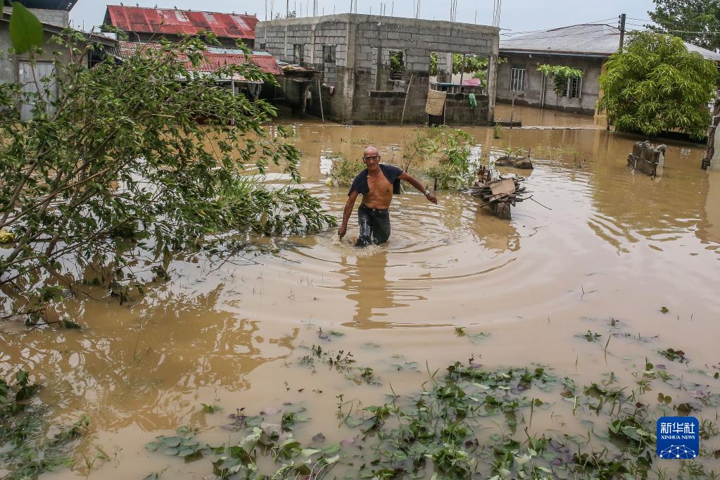 9月26日,在菲律宾布拉干省,一名男子涉水出行。
