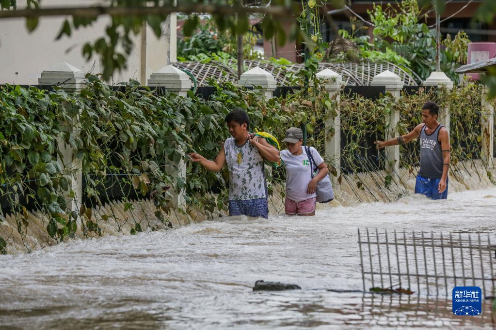 9月26日,在菲律宾布拉干省,人们涉水出行。