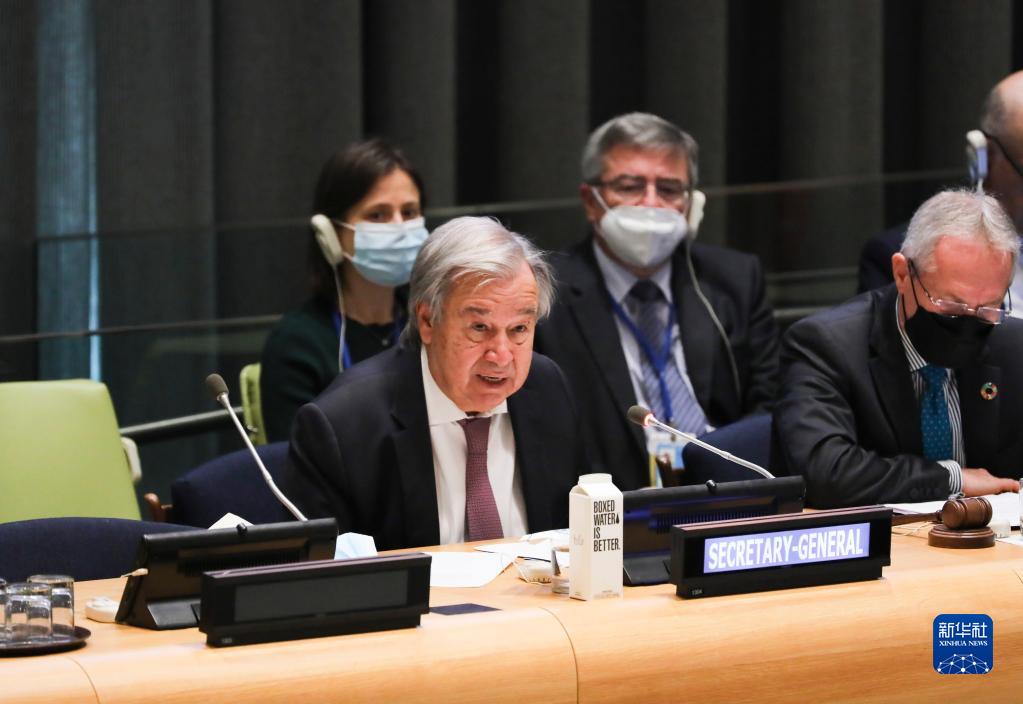 9月26日,在位于纽约的联合国总部,联合国秘书长古特雷斯(前左)在纪念“彻底消除核武器国际日”高级别会议上致辞。