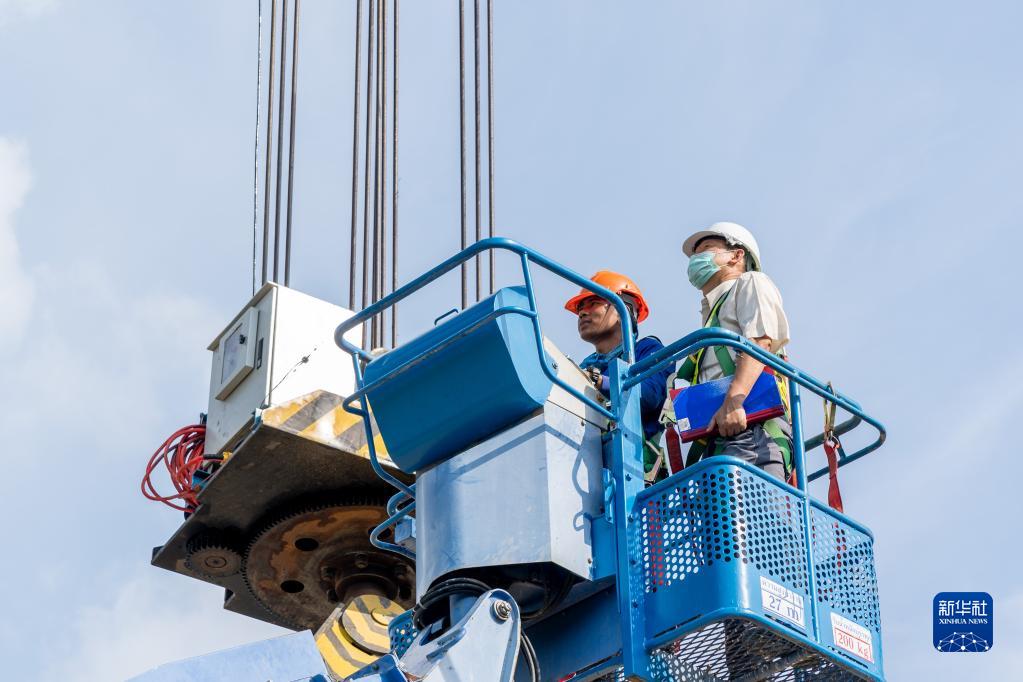9月7日,在泰国呵叻,中泰铁路项目部监理四组副组长威罗(右)在工作中。