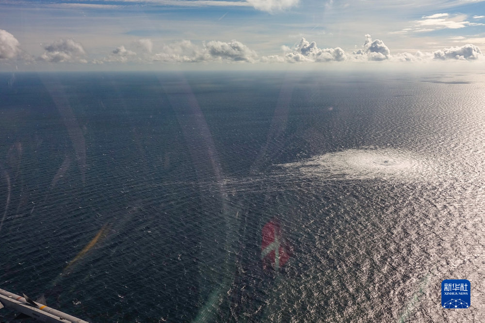 这张丹麦国防部9月27日发布的航拍照片显示的是一处“北溪”天然气管道泄漏点。
