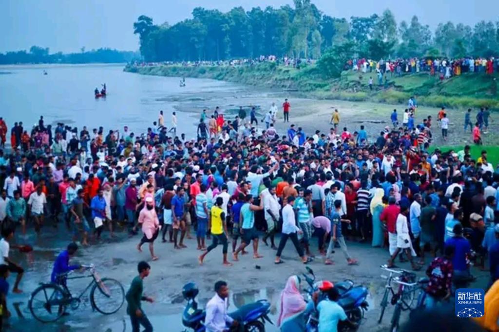 9月26日,在孟加拉国班贾戈尔地区,人们聚集在发生沉船事故的河边。