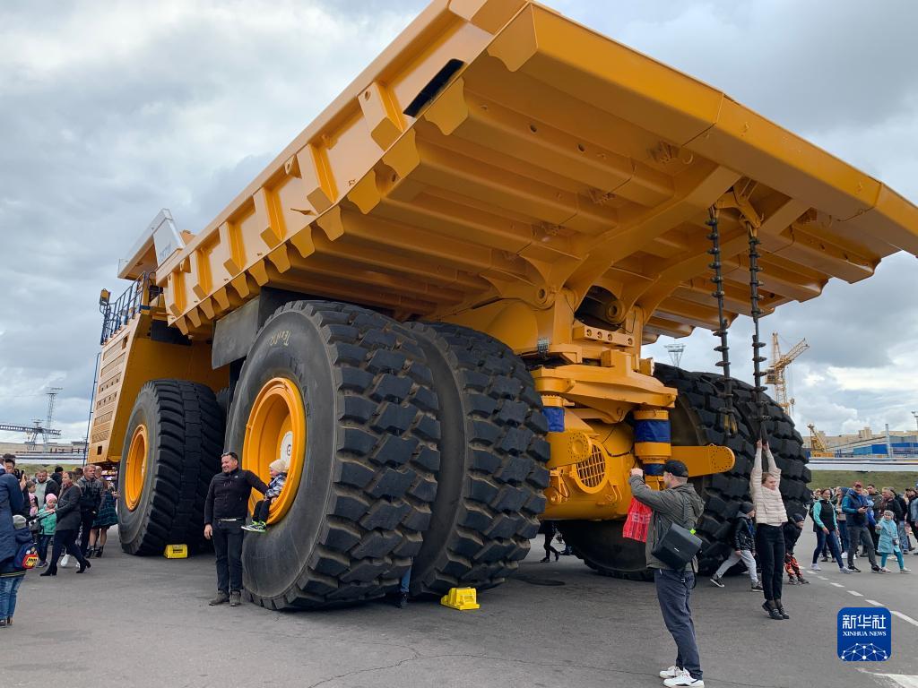 9月24日,市民在白俄罗斯明斯克州若基诺市的白俄罗斯汽车制造厂参观Belaz75711大型自卸车。
