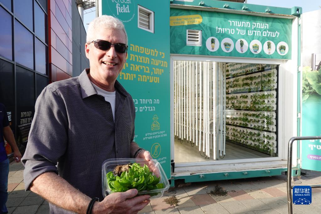 以色列一家农业科技公司在超市、餐馆和购物中心的室内外安装了多处便携式城市“垂直农场”装置。在这样的“农场”中,蔬菜垂直排列在墙壁上的容器里,减少对水和土壤的使用,提高种植效率,供顾客选购。