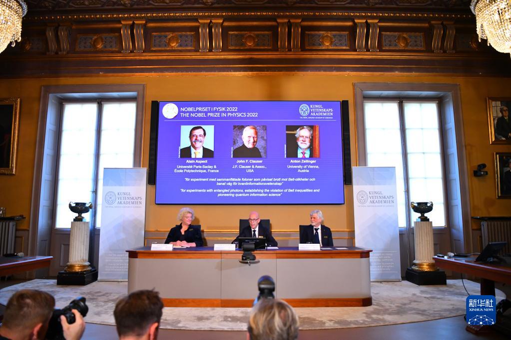 新华社斯德哥尔摩10月4日电(记者和苗 付一鸣)瑞典皇家科学院4日宣布,将2022年诺贝尔物理学奖授予法国科学家阿兰·阿斯佩、美国科学家约翰·克劳泽和奥地利科学家安东·蔡林格,以表彰他们在“纠缠光子实验、验证违反贝尔不等式和开创量子信息科学”方面所做出的贡献。