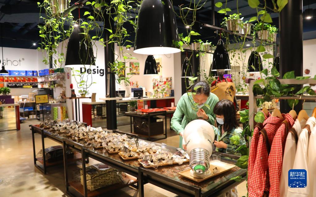 游客们在位于上海杨浦滨江的奥地利珍得巧克力剧院商店内挑选巧克力(2022年9月24日摄)。