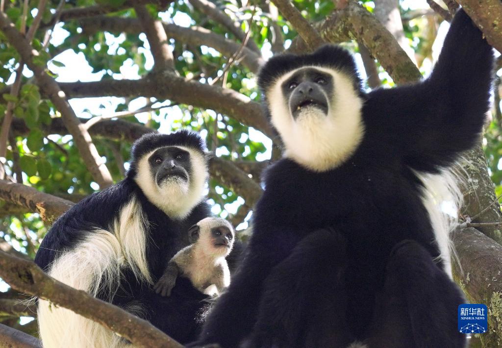 这是10月5日在肯尼亚纳纽基拍摄的东非黑白疣猴。