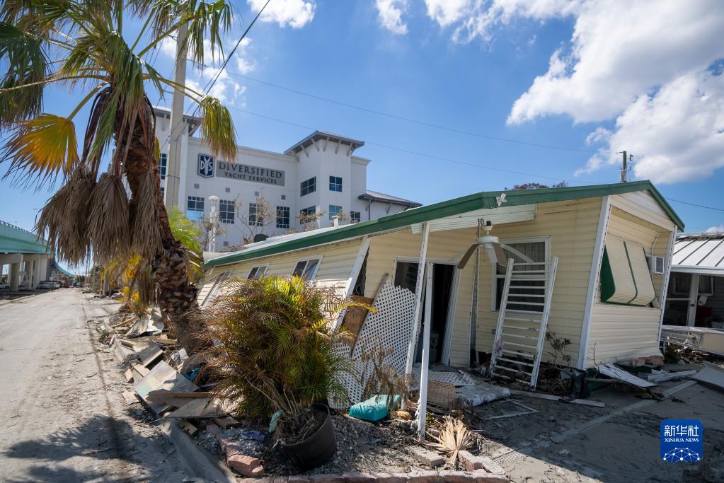 这是10月4日在美国佛罗里达州迈尔斯堡拍摄的遭飓风“伊恩”破坏的建筑。 新华社发(罗兰多·洛佩斯摄)