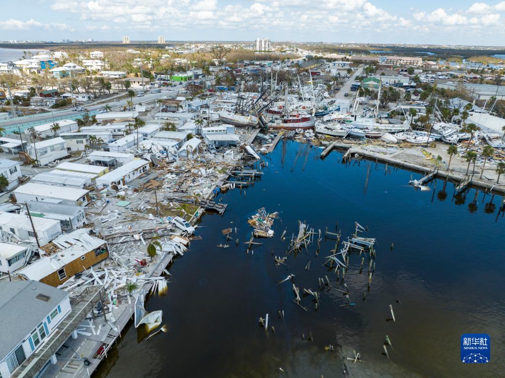 这是10月4日在美国佛罗里达州迈尔斯堡拍摄的遭飓风“伊恩”破坏的码头。 新华社发(罗兰多·洛佩斯摄)