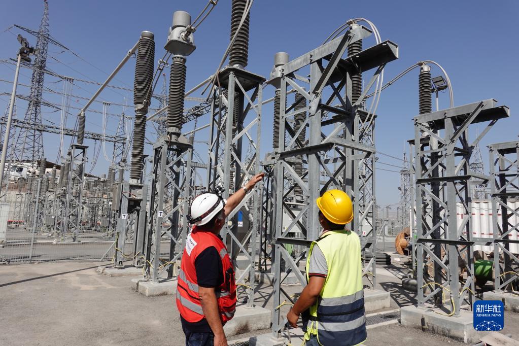 10月4日,中国电建工作人员和以色列工程师在以色列东北部贝特谢安市的抽水蓄能电站施工。新华社记者 王卓伦 摄