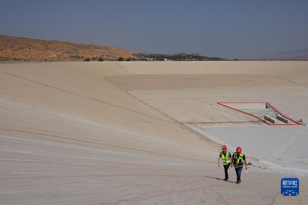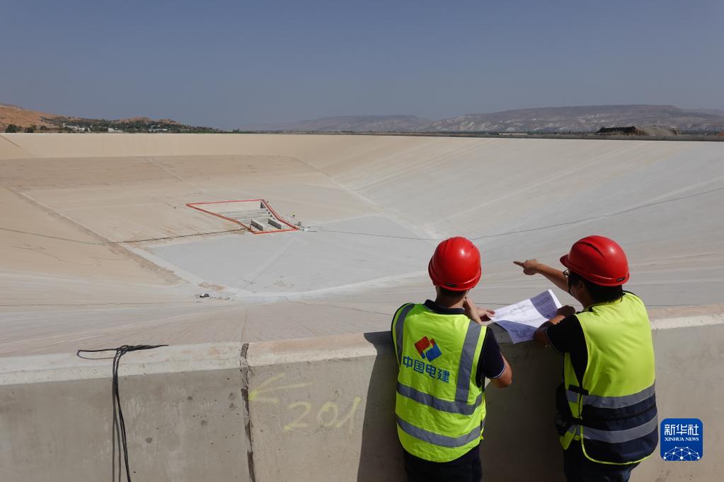 10月4日,中国电建工作人员在以色列东北部贝特谢安市的抽水蓄能电站新完工的下水库现场。新华社记者 王卓伦 摄