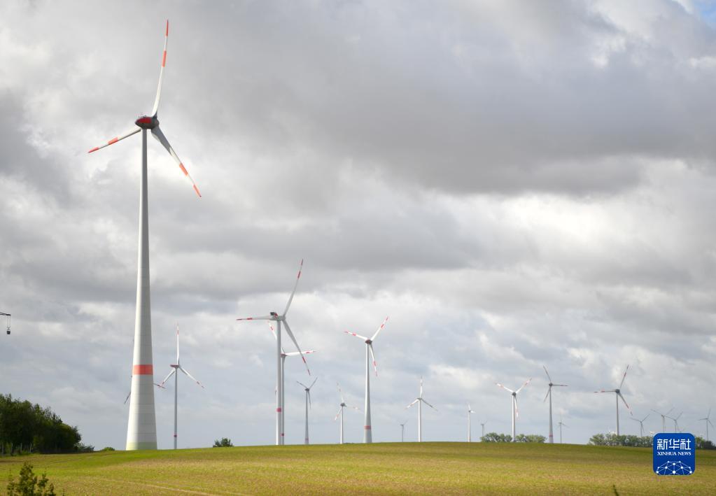 这是9月15日在德国勃兰登堡州拍摄的风电设施。