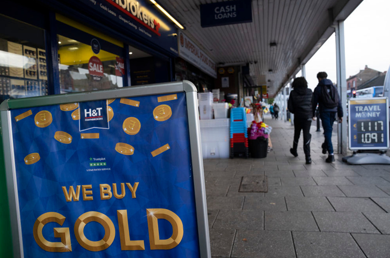 ↑10月7日在英国曼彻斯特拍摄的一家当铺的广告牌。