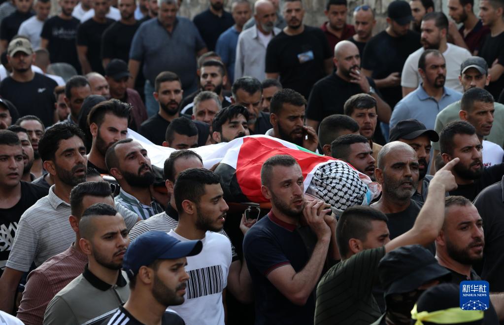 10月14日,在约旦河西岸北部城市杰宁,人们为被以色列军队打死的巴勒斯坦人送葬。