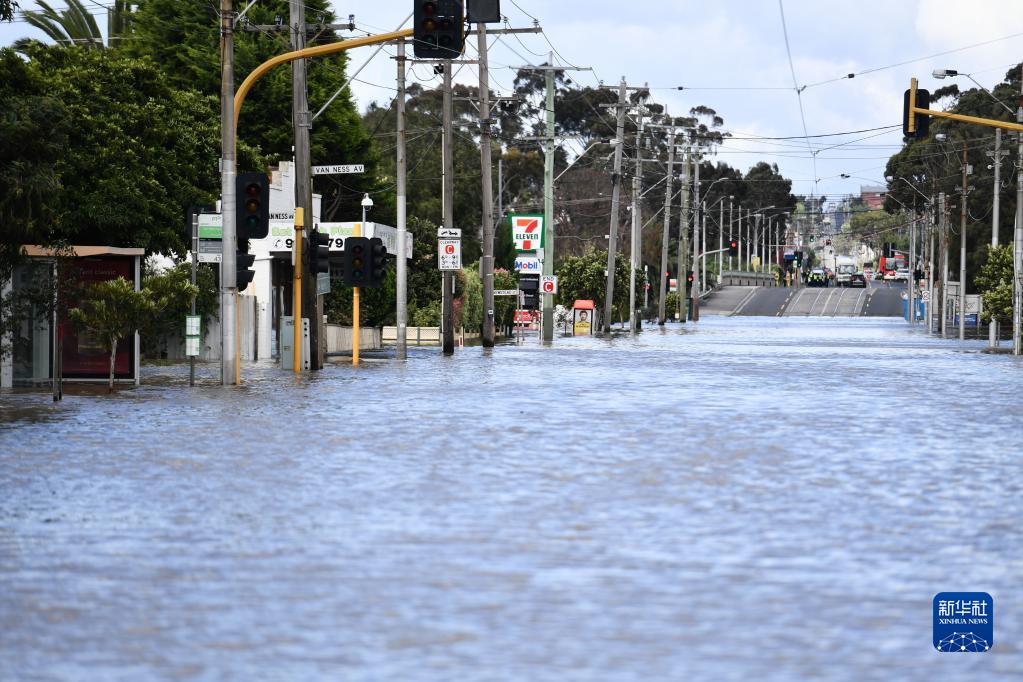 这是10月14日在澳大利亚维多利亚州拍摄的被洪水淹没的街道。