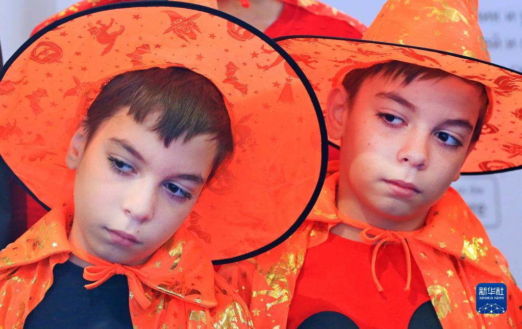 10月15日,在白俄罗斯明斯克,一对双胞胎参加活动。