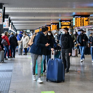 2022年4月1日,旅客走在意大利罗马特米尼火车站内。(新华社记者金马梦妮摄)