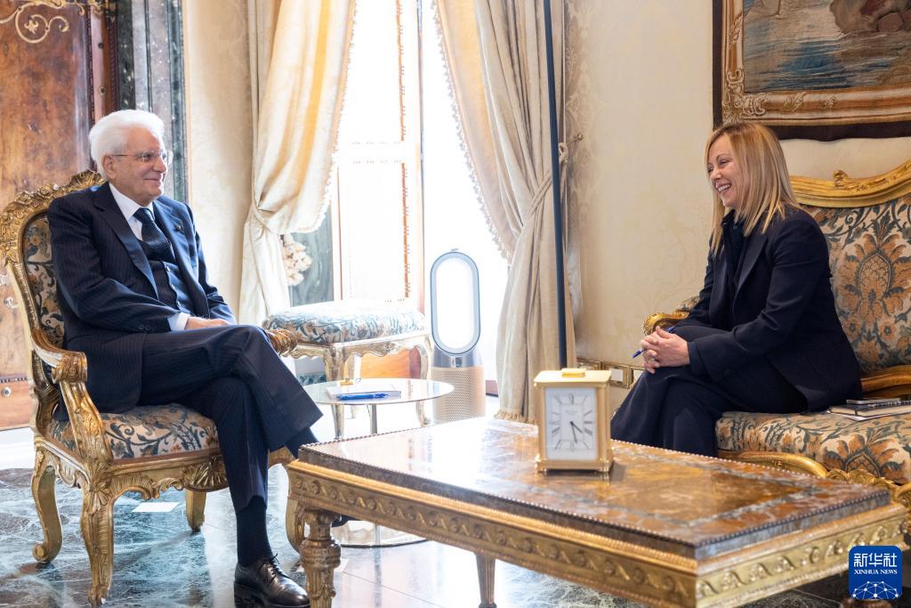 10月21日,在位于罗马的意大利总统府,意大利总统马塔雷拉(左)会见意大利兄弟党党首焦尔吉娅·梅洛尼。