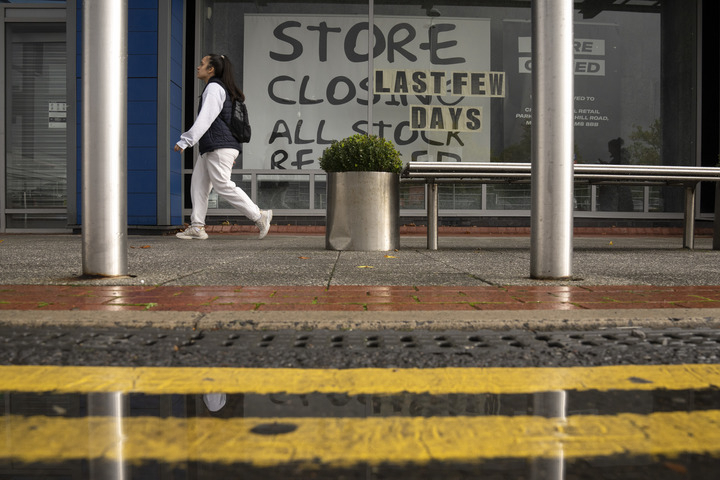 10月7日,在英国曼彻斯特,一名行人走过一家关闭的店铺。新华社发(乔恩·休珀摄)
