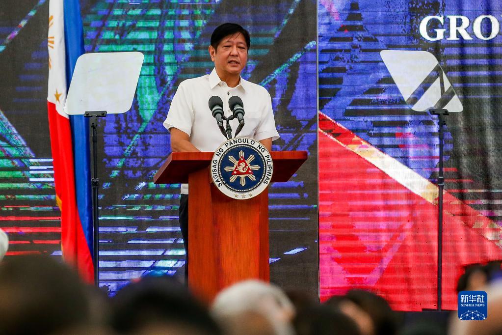 10月27日,在菲律宾达沃,菲律宾总统马科斯在达沃-萨马尔岛大桥的开工仪式上发表讲话。