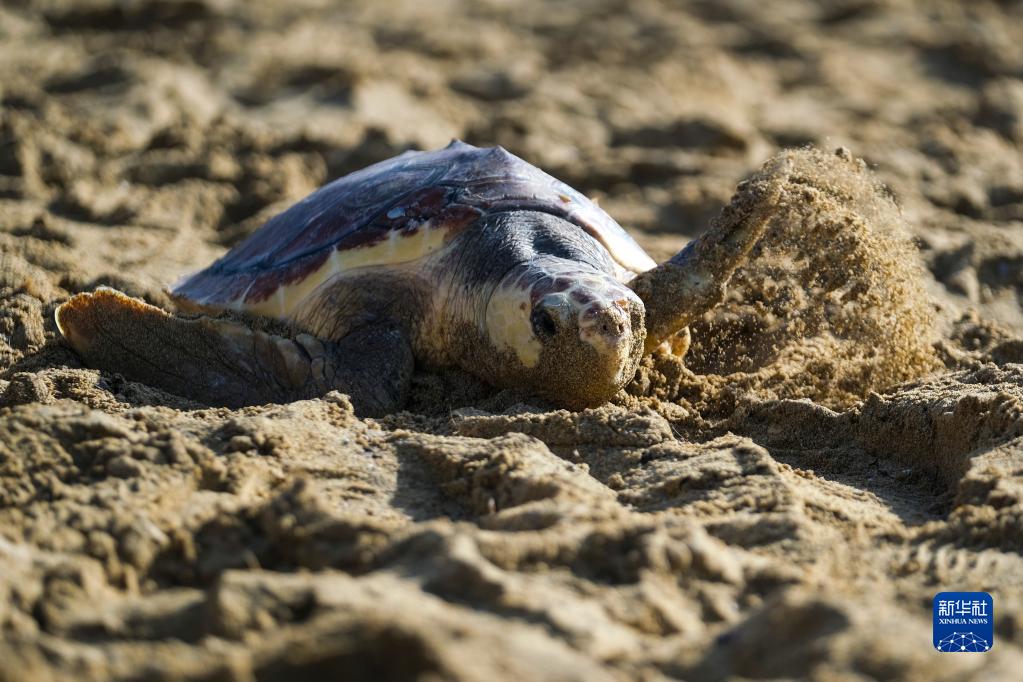 10月27日,在马耳他马尼卡塔的金海湾,一只经过救治后康复的海龟被放归大海。