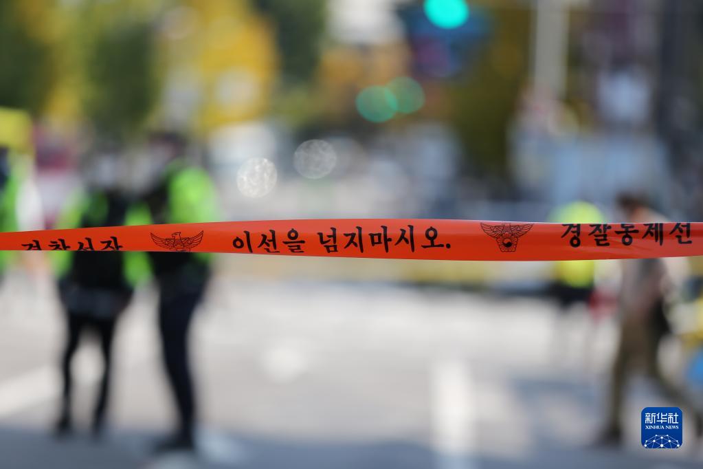 这是10月30日在韩国首尔踩踏事故现场拍摄的警戒线。 新华社记者 王益亮 摄