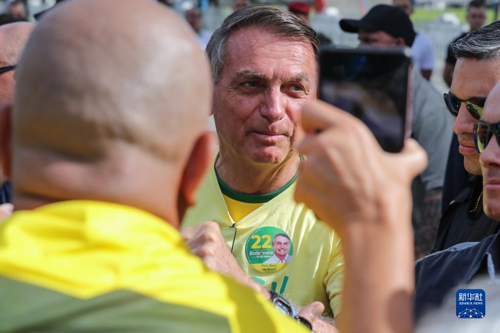 10月30日,巴西右翼阵营自由党候选人、现任总统博索纳罗在里约热内卢一处投票站参加投票前与支持者交谈。新华社记者 王天聪 摄