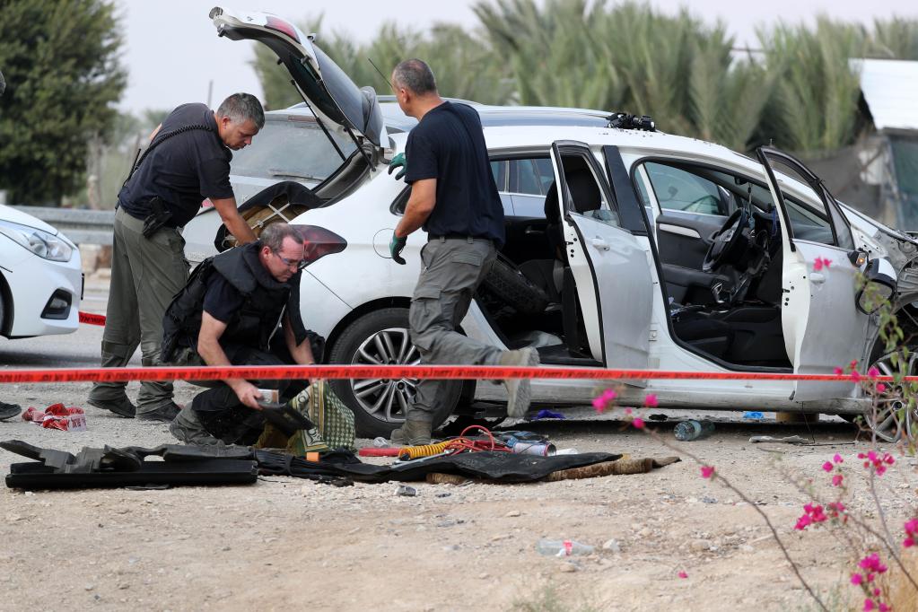 10月30日,以色列安全人员在约旦河西岸城市杰里科以南一起袭击事件的现场工作。新华社发(穆阿马尔·阿瓦德摄)
