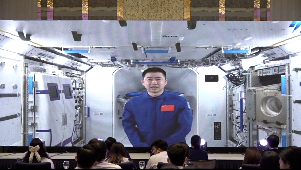 对于学生们提出的五花八门问题,三名航天员陈冬、刘洋和蔡旭哲都一一予以耐心解答,并分享了他们在空间站里的工作生活情况:中国空间站里有饮水分配器和热风循环加热器,可以喝上热水和吃上新鲜热辣的食物;尽管在太空中每90分钟都能看到日出日落,航天员们还是保持每晚7小时的睡眠……