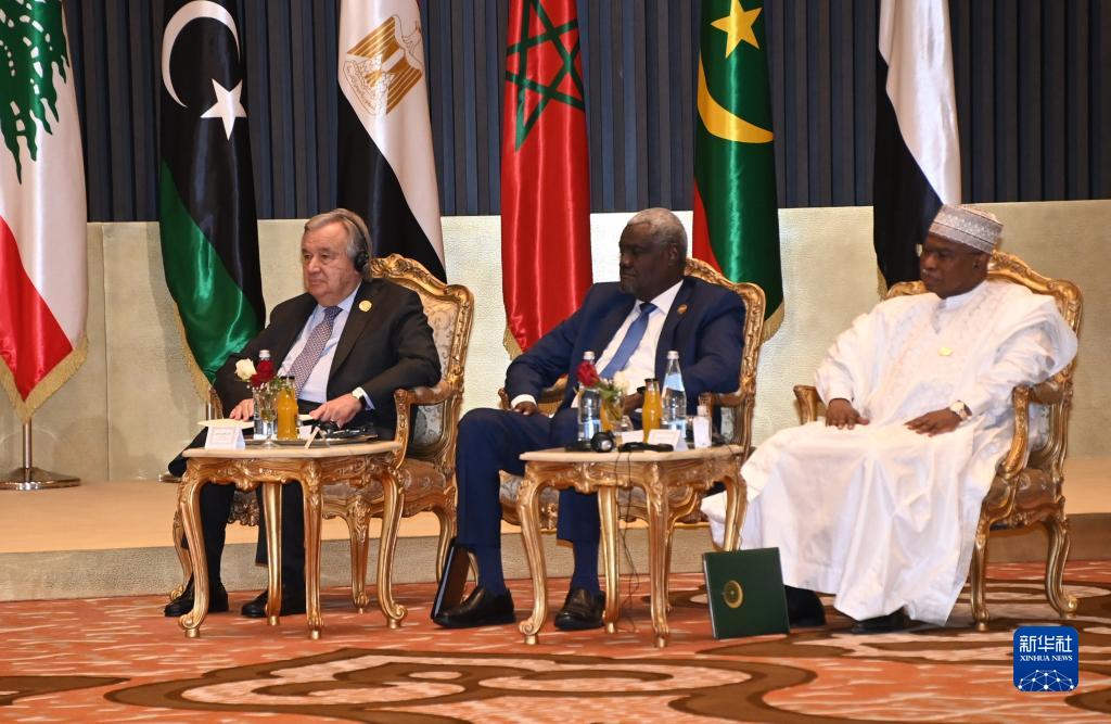 11月1日,联合国秘书长古特雷斯(左)等在阿尔及利亚首都阿尔及尔出席第31届阿拉伯国家联盟首脑理事会会议。