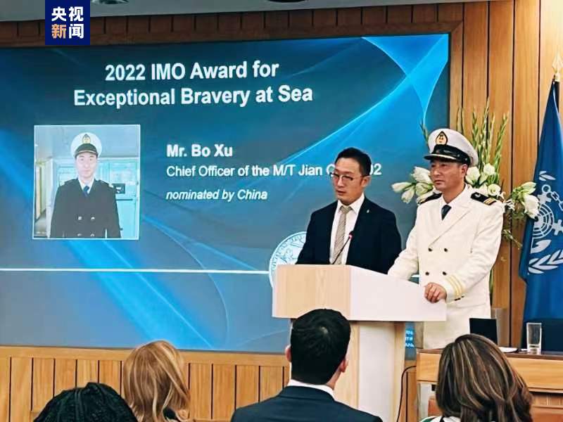 英国伦敦当地时间11月2日,国际海事组织(IMO)在海上安全委员会第106届会议期间,举行了2022年海上特别勇敢奖颁奖典礼,IMO秘书长林基泽为我国“建桥502”轮大副许波颁发2022年海上特别勇敢奖章。