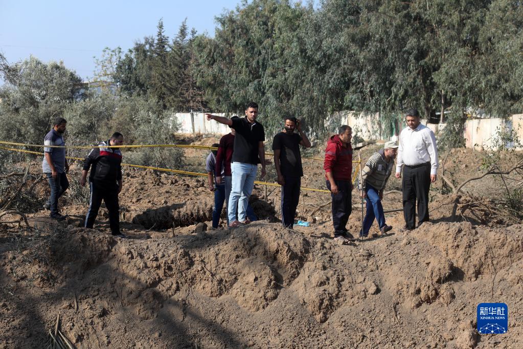 11月4日,人们查看位于加沙地带中部的遭以军空袭破坏的区域。