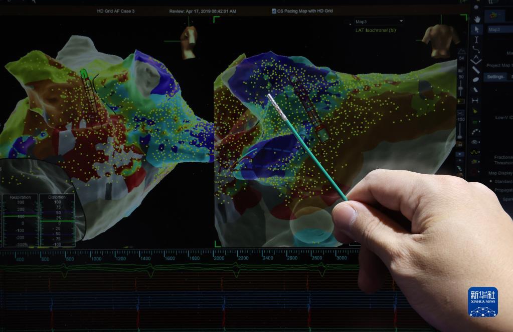 11月5日在第五届进博会医疗器械及医药保健展区拍摄的一款用于心脏超声检测的消融导管。