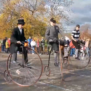 当地时间11月5日,一场别具特色的传统高轮自行车比赛活动在捷克首都布拉格举行。据主办方介绍,当天来自捷克各地30多名高轮自行车爱好者相聚布拉格的莱特纳公园,参加了一英里骑行赛、慢速竞技赛以及骑行表演等活动。