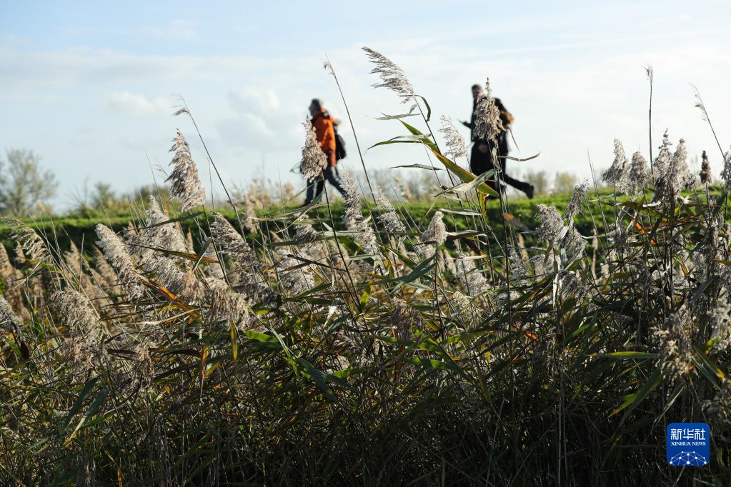 在荷兰多德雷赫特,人们在比斯博斯国家公园徒步(11月2日摄)。