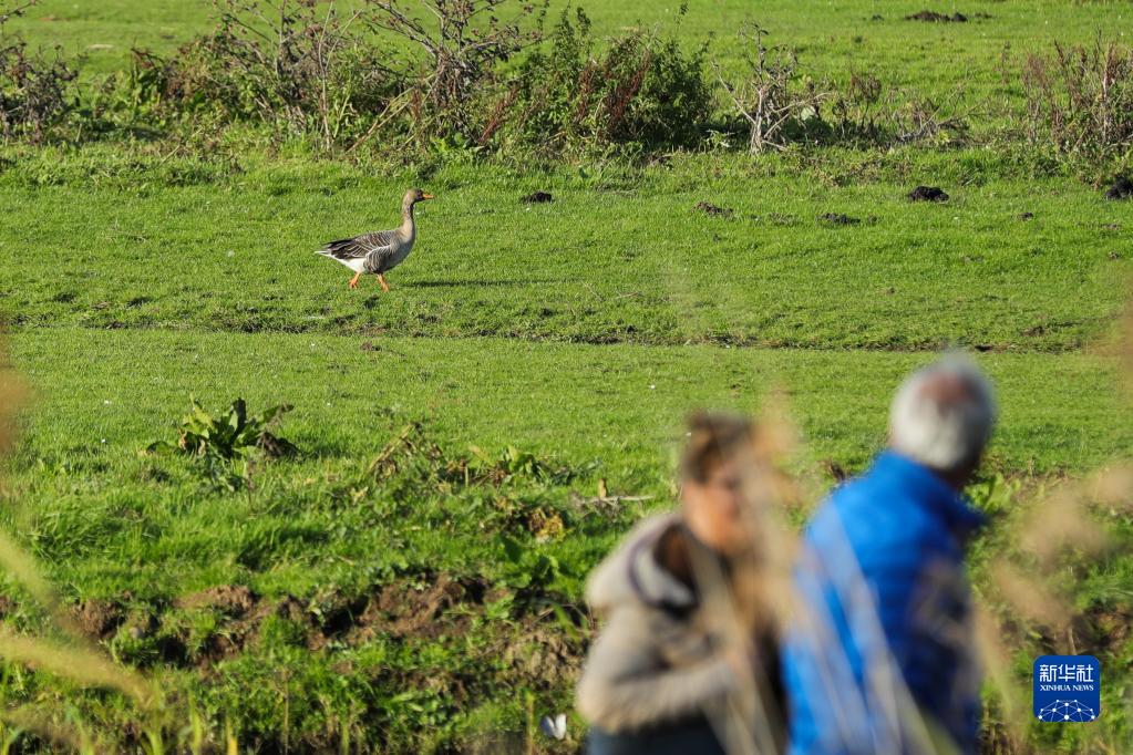 在荷兰多德雷赫特,人们在比斯博斯国家公园观赏灰雁(11月2日摄)。
