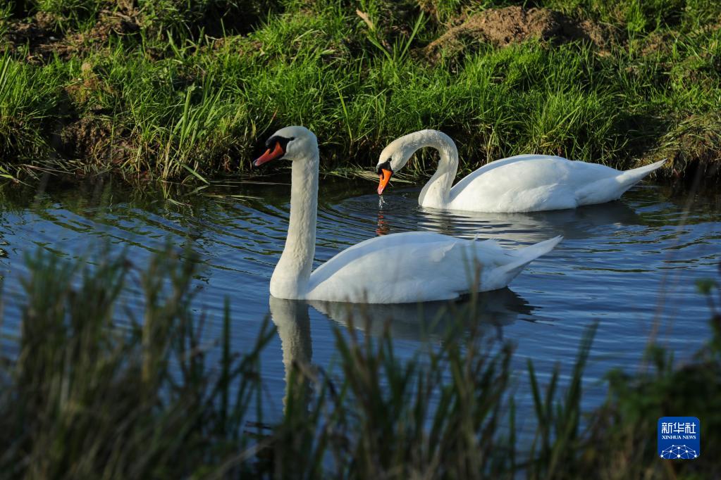 在荷兰多德雷赫特,天鹅在比斯博斯国家公园的水面上游弋(11月2日摄)。