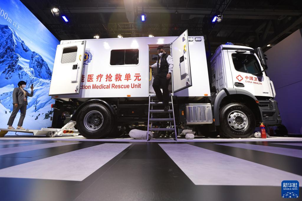 11月6日在第五届进博会梅赛德斯-奔驰展台拍摄的多功能医疗抢救单元。