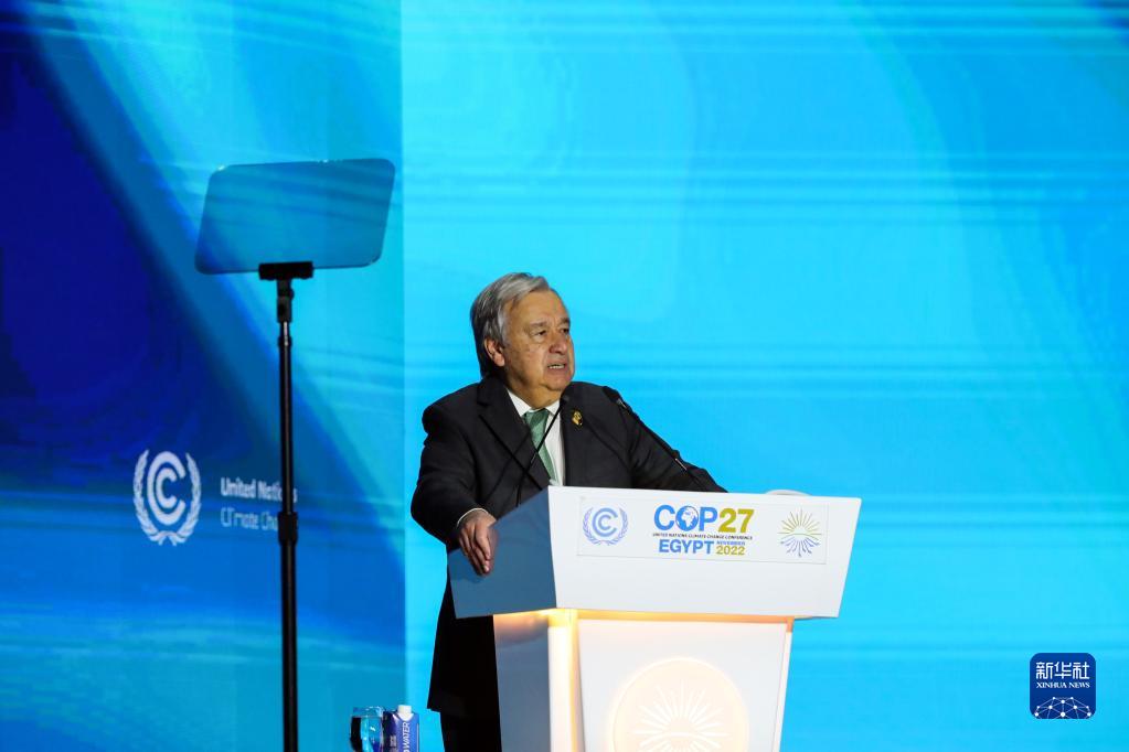 11月7日,在埃及沙姆沙伊赫,联合国秘书长古特雷斯在联合国气候变化大会气候落实峰会开幕式上讲话。