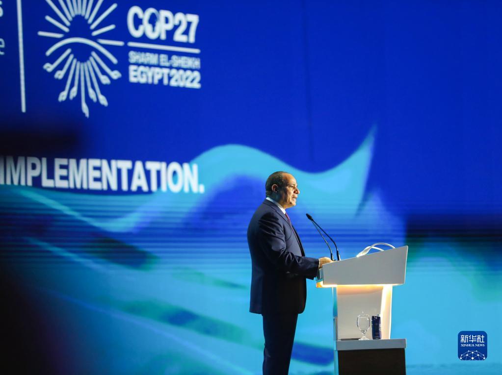 11月7日,在埃及沙姆沙伊赫,埃及总统塞西在联合国气候变化大会气候落实峰会开幕式上讲话。