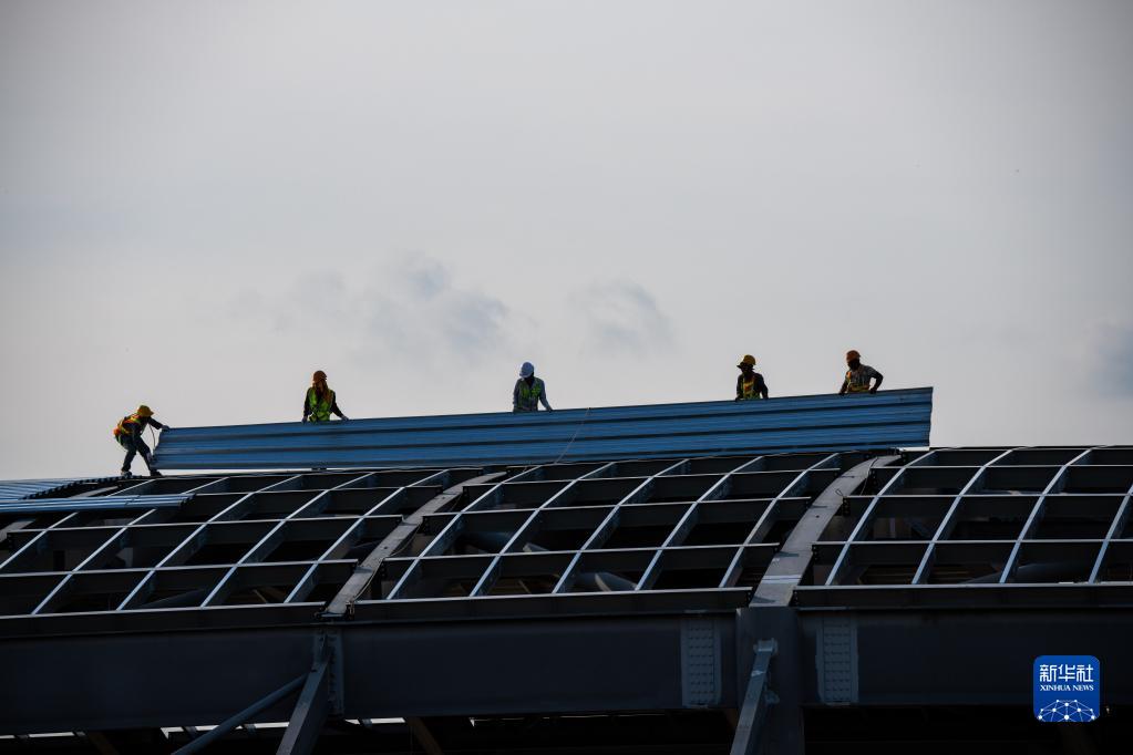 11月8日,工人在柬埔寨新金边国际机场项目施工现场工作。