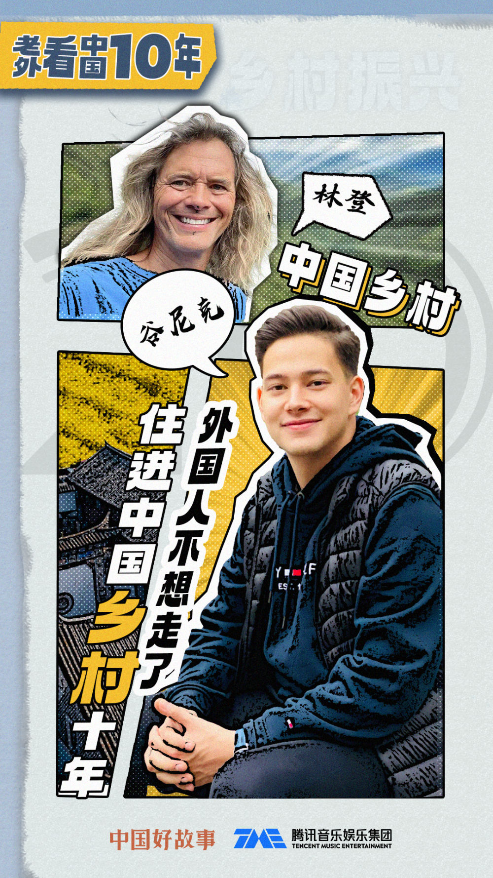 中国搜索“中国好故事”数据库联合腾讯音乐娱乐集团,策划推出中英双语系列片《老外看中国10年》(英文译名Welcome to C),近日在国内外互联网平台正式上线。