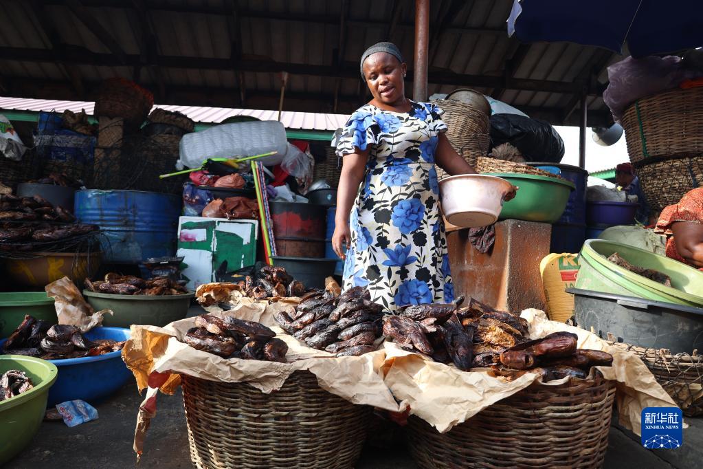 11月10日,商贩在加纳首都阿克拉的市场上售卖货物。