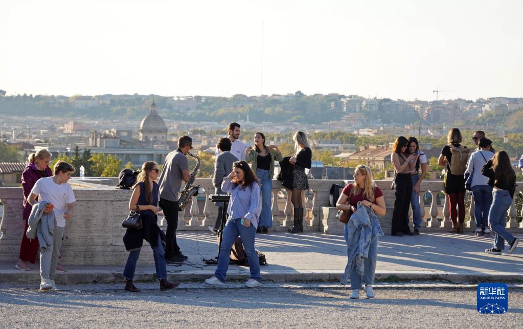 11月11日,游客聚集在意大利罗马的苹丘观景台。
