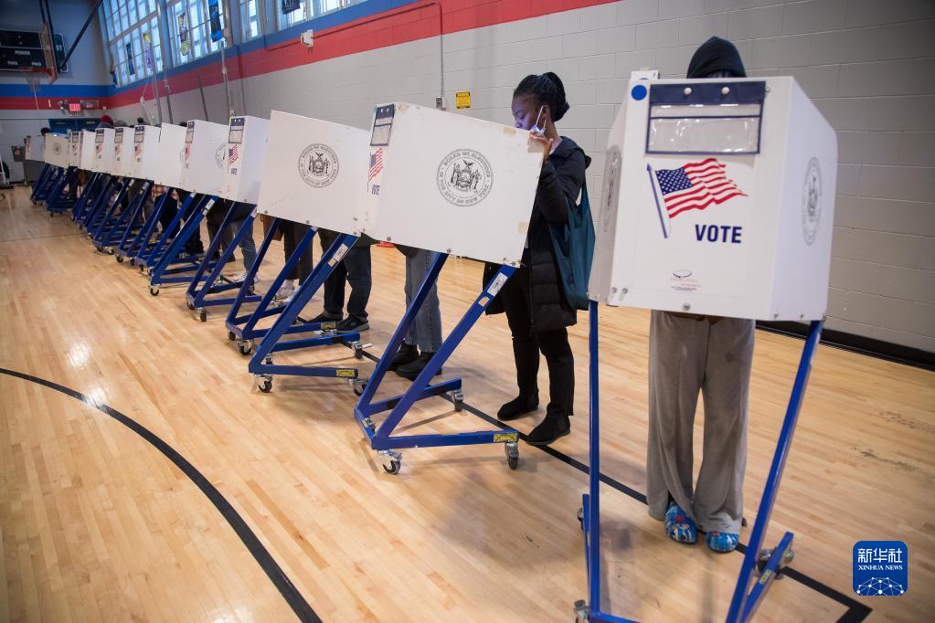 11月8日,选民在美国纽约的一处投票站参加中期选举投票。